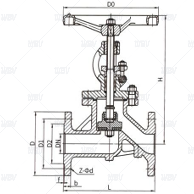 | 公称通径DN | L | D | D1 | D2 | D6 | b-f | f2 | z-Фd | H | D0 |