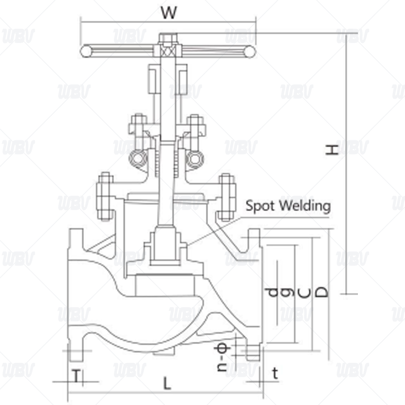 | 公称压力 | DN | L | D | C | g | T-t | H | w | n-Ф |