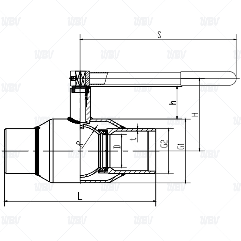 | DN | PN | L | R | D | G1 | G2 | H | h | t | s |
