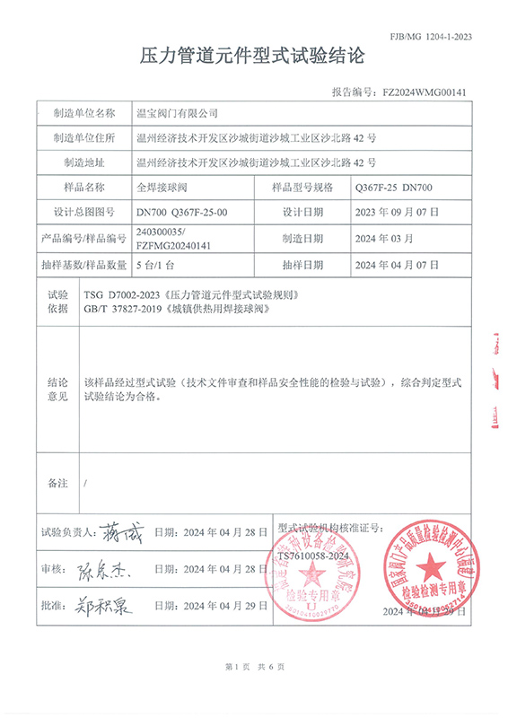 您当前的位置:首页 / 资质证书 / 特种设备型式试验报告 Q367F-25 DN700